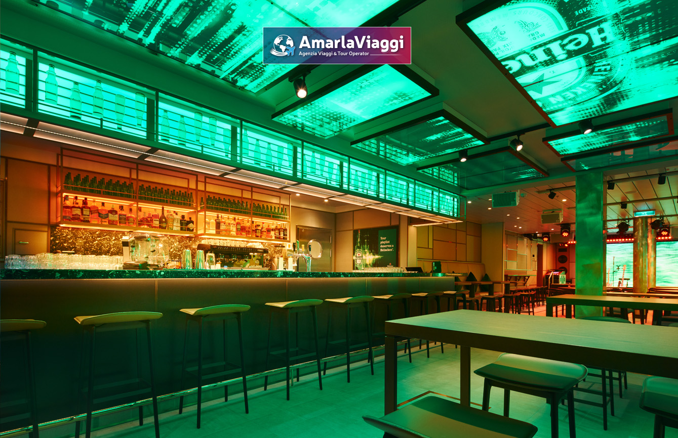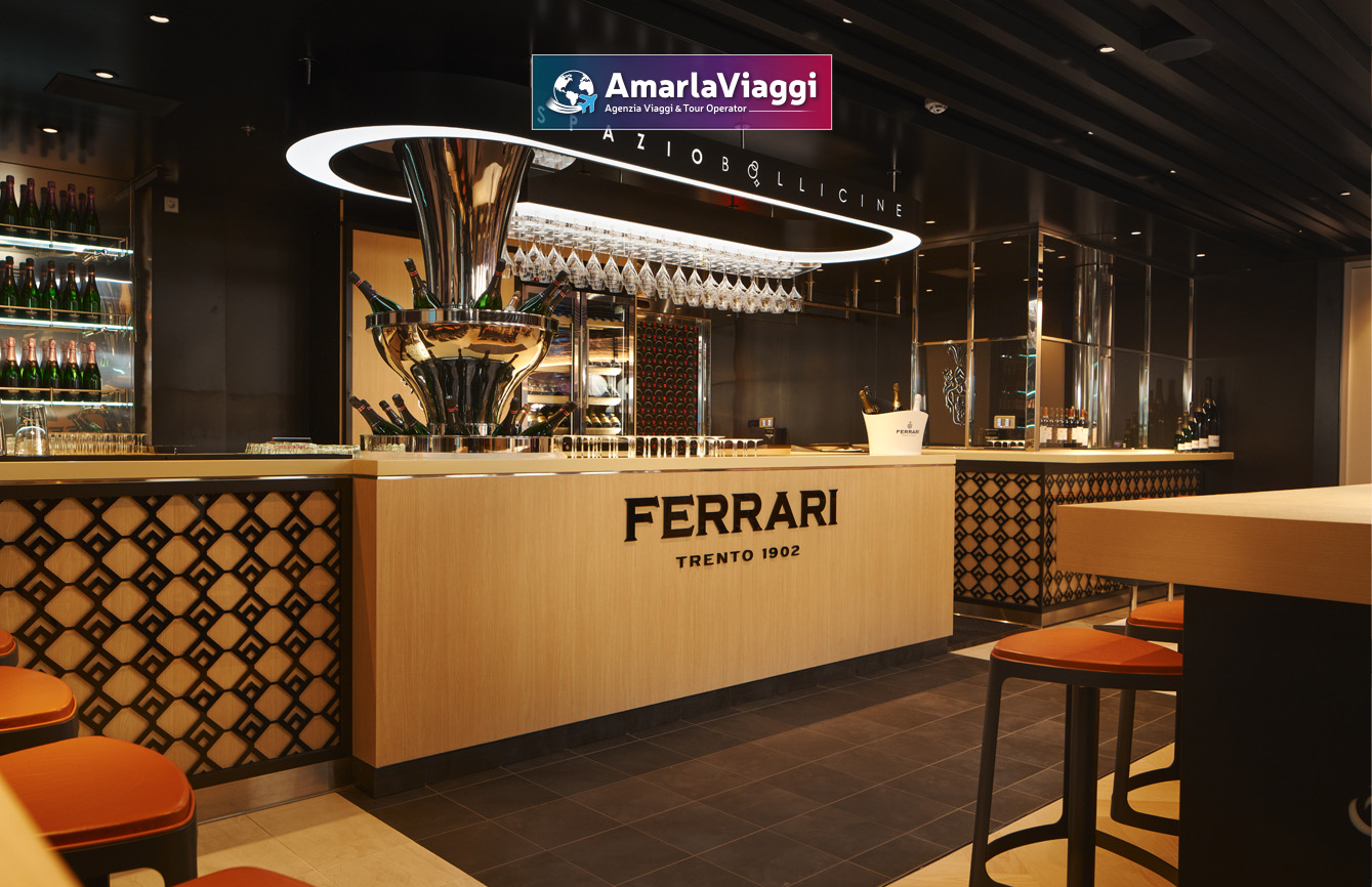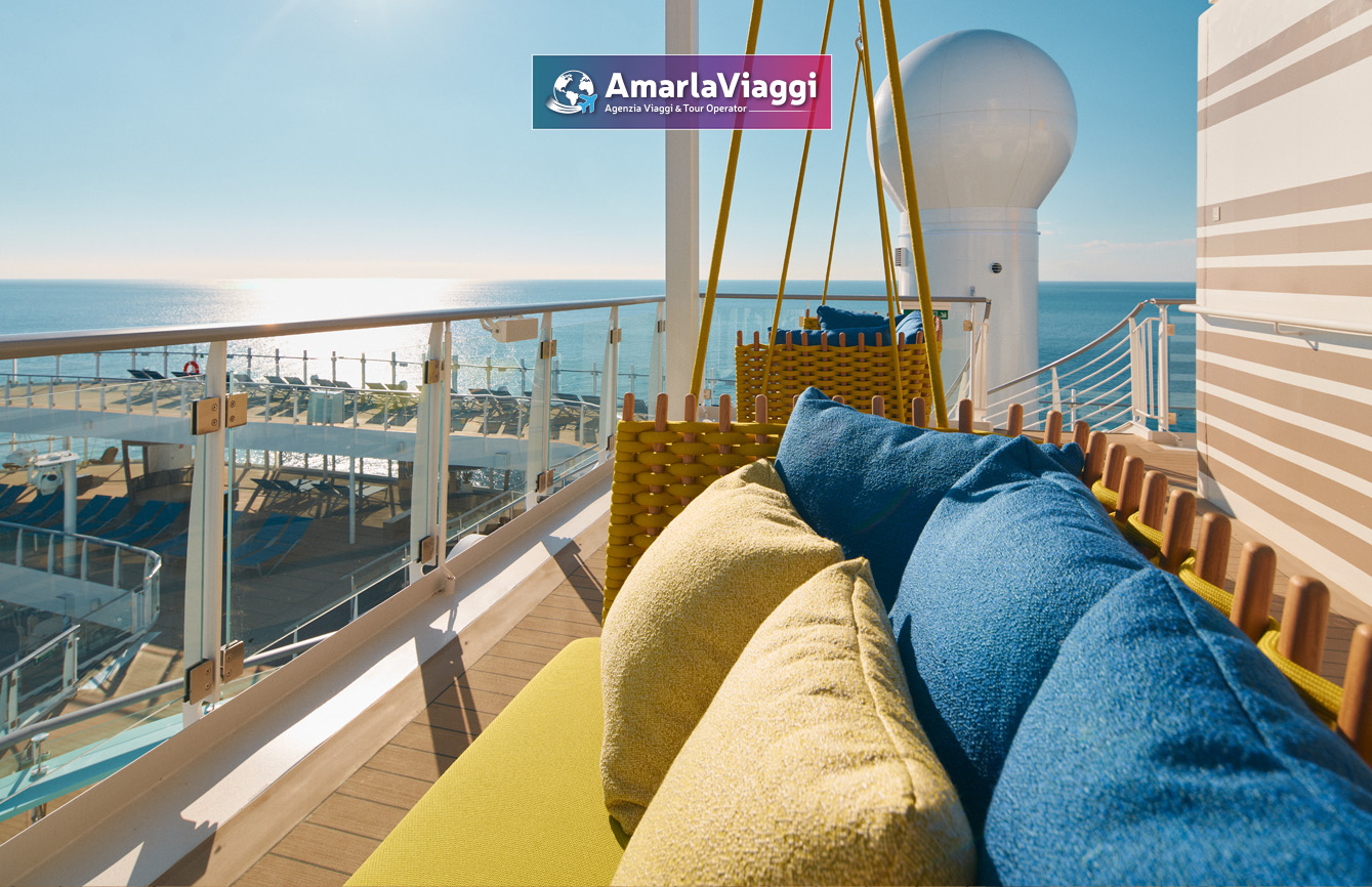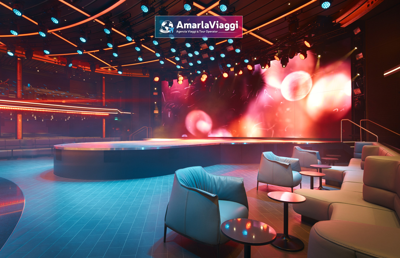 A bordo, i servizi sorprendono per varietà. Tredici piscine e idromassaggi accolgono chi cerca relax e divertimento. Undici ristoranti propongono un viaggio gastronomico che spazia dalle specialità italiane ai sapori internazionali. Diciannove bar e lounge offrono atmosfere diverse, perfette per ogni momento della giornata. Non mancano una spa all’avanguardia, una palestra moderna e spazi dedicati all’intrattenimento. Scivoli e giochi d’acqua rendono felici anche i più piccoli.